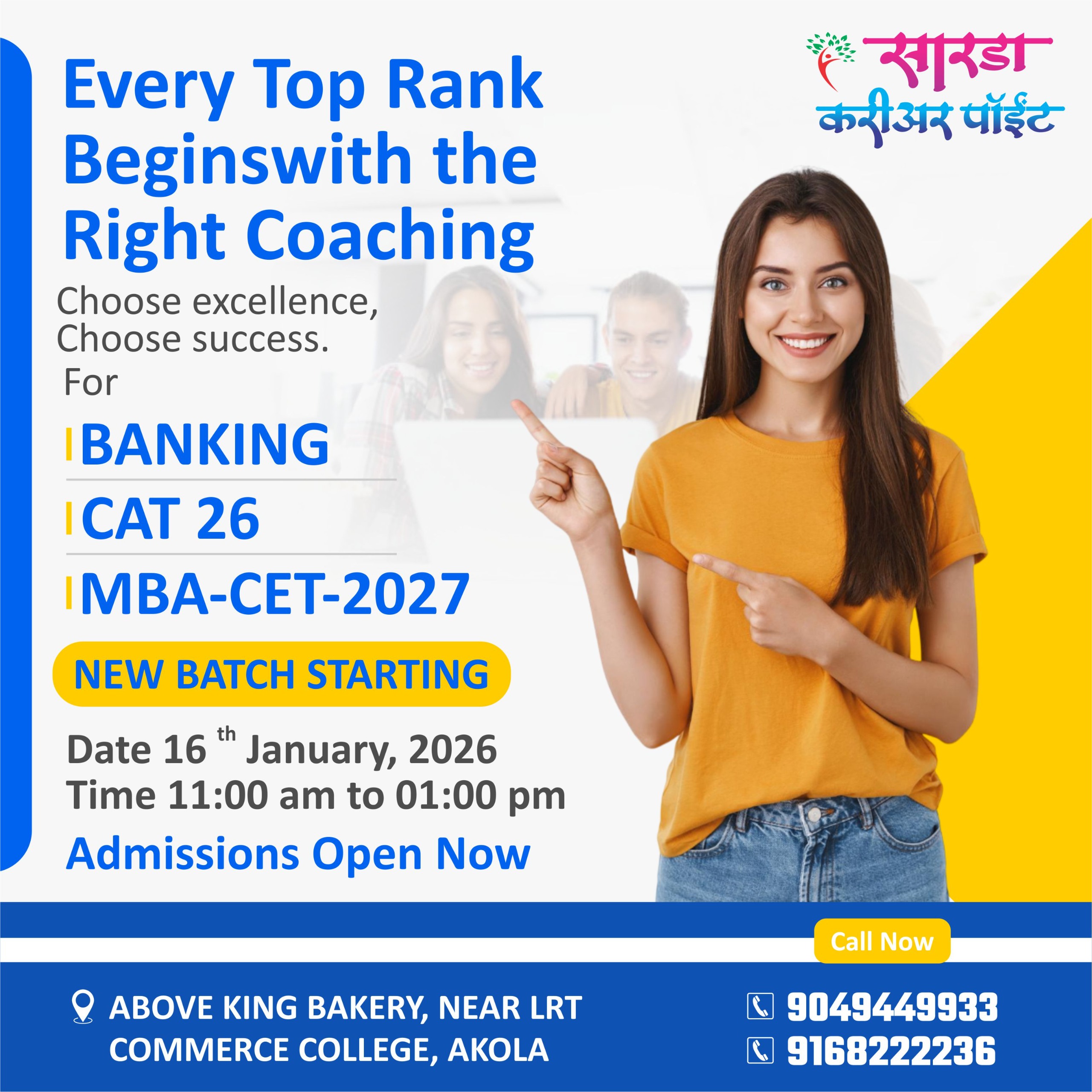 Sarda Career Point is India's Premier institution established with the sole aim to initiate, enable and empower individuals to grow up to be extraordinary Teachers. Sarda Career Point invites students who are prepared to interface their experience and diverse backgrounds with our high-end educational programmes. It is committed to their transformation into a developed personality - prepared to face not only competitive examinations but also succeed in brilliantly modelling their respective career paths and to grow up to be extra-ordinary citizens of the world.